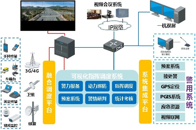 融合调度平台无缝集成有线、无线、350M、3G/4G等通讯资源,同时可接入 GPS 设备和视频监控点,为可视化指挥调度提供各种指挥资源。
