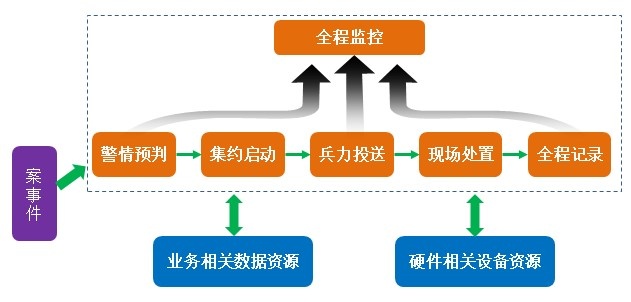 可视化指挥调度系统通过信息采集与视频监控实时收集现场的案事件进展情况、处置力量行动处置状态、社会联动单位状况等各方面信息,以情报分析、态势展现、指挥保障为支撑,达到合理规划资源,实时掌握处置力量动态情况,监控、督导执行情况,对所属各个处置力量进行有效指挥。