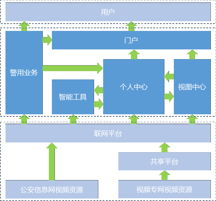 视频侦查应用系统采用面向服务的SOA架构和动态模型系统,以“警用门户+个人中心+视图中心+智能工具”为实战模型。