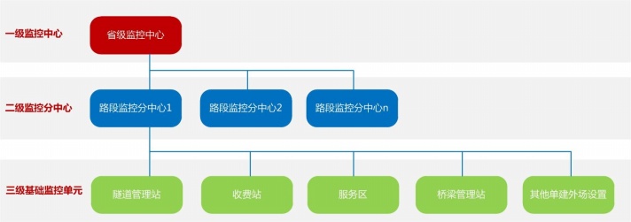 海康威视高速公路运营可视化综合监控系统由高速公路省级监控中心、路段监控分中心、基础监控单元三级管理架构构成。以路段监控分中心为主要监控组织,收费站、隧道管理站、桥梁管理站辅助监控。